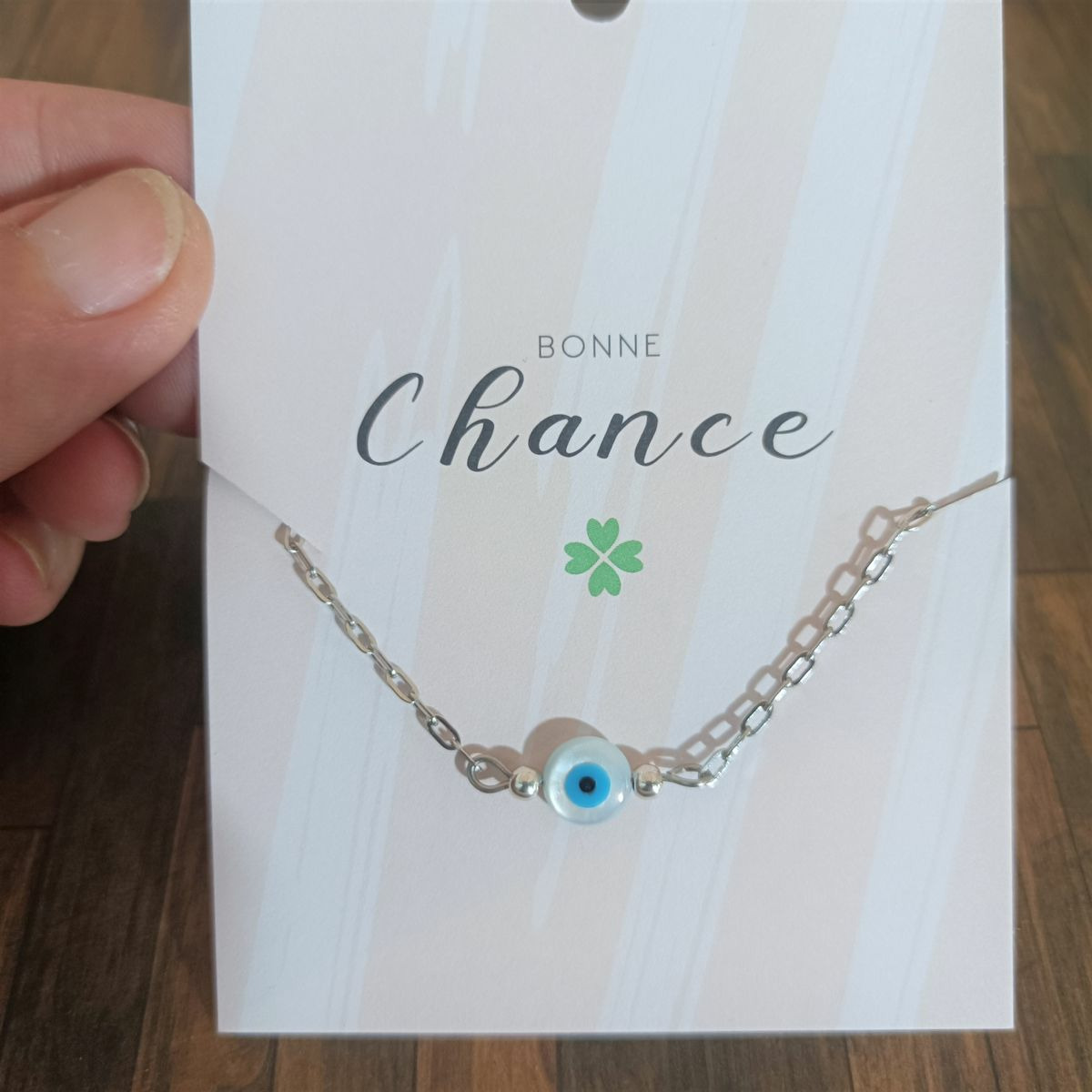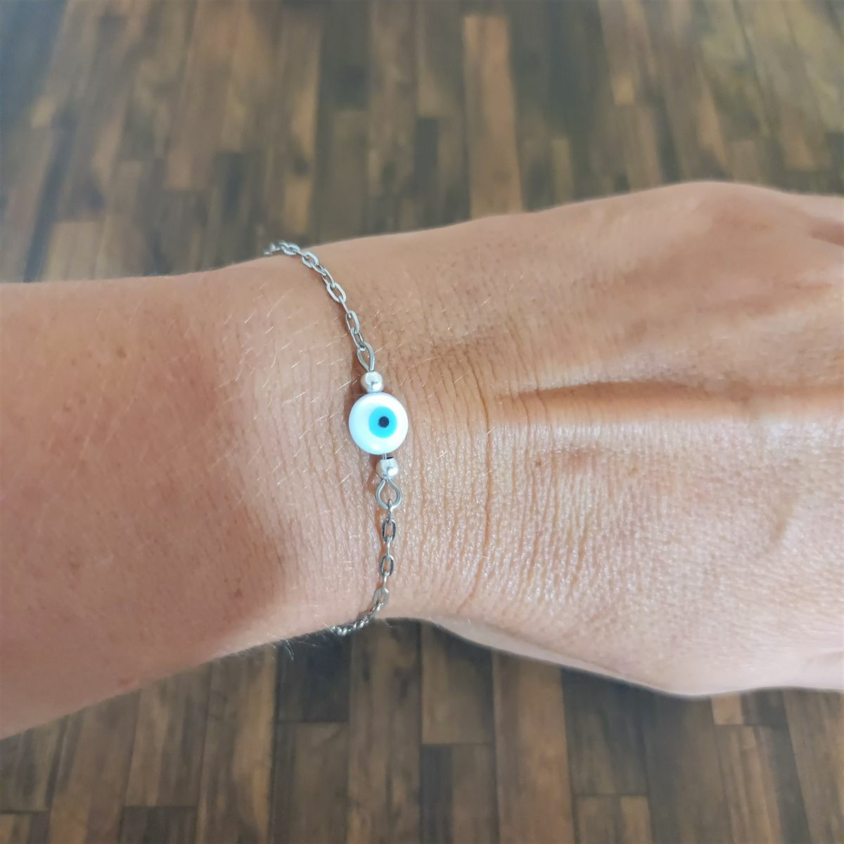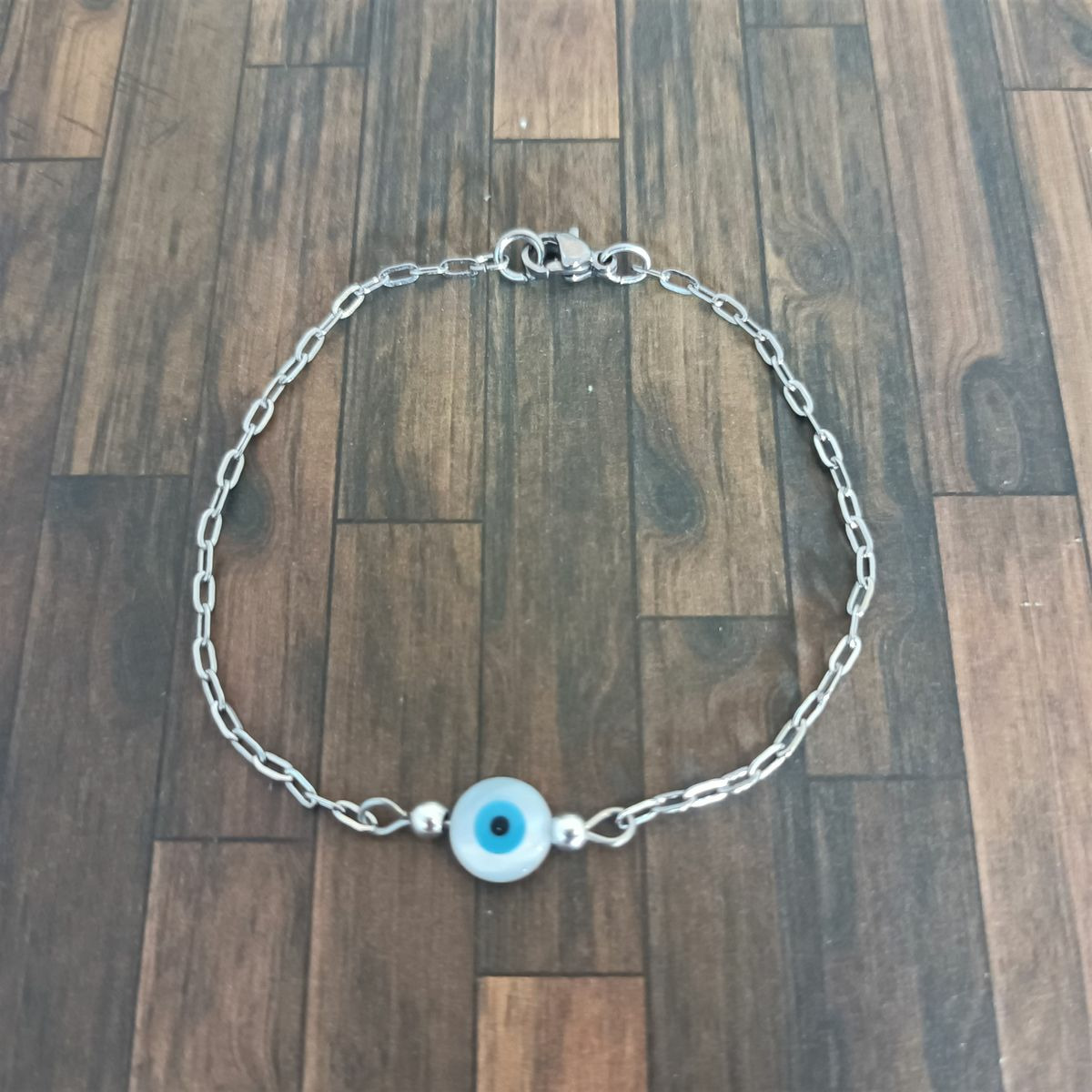 Perle rode "evil eye" en nacre et chaîne en acier inoxydable.