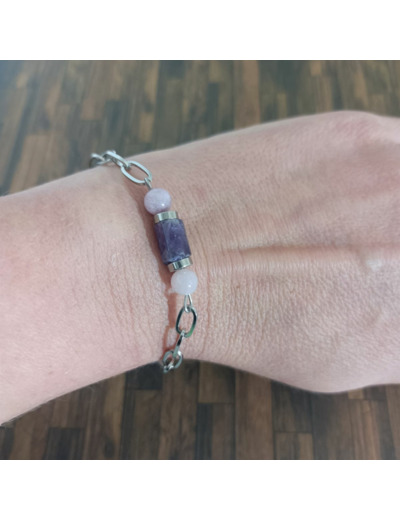Chaîne en acier inoxydable et perle naturelle d'Améthyste et Kunzite.
