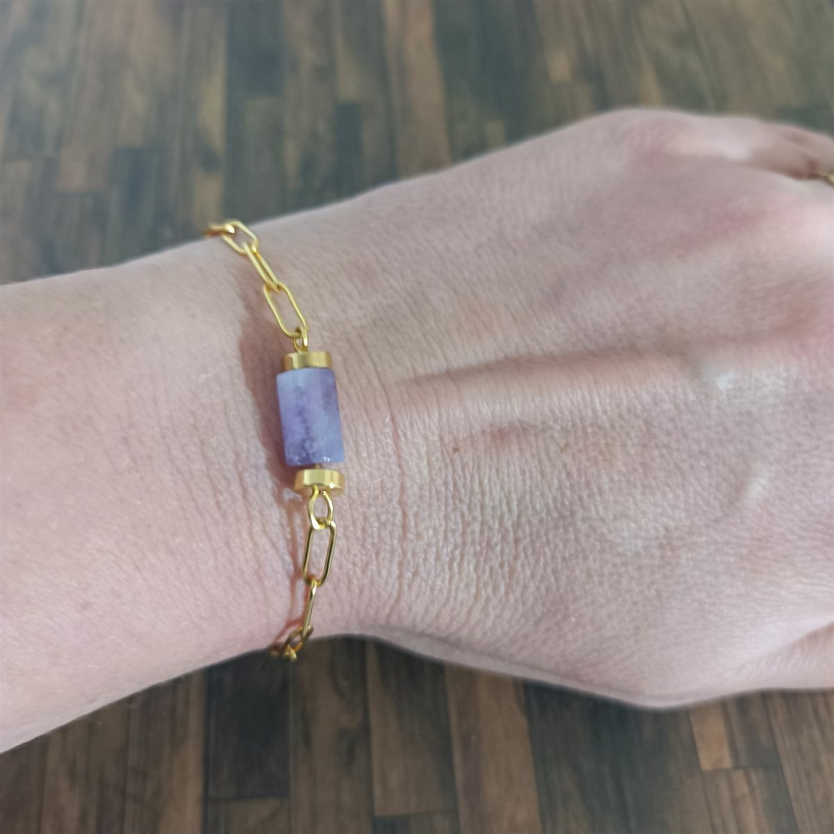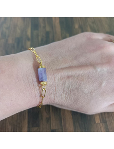 Chaîne en acier inoxydable et perle naturelle d'Améthyste.