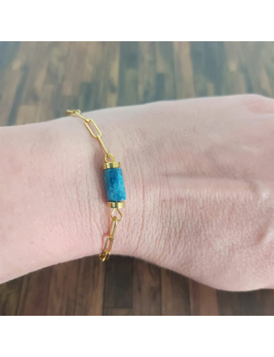 Chaîne en acier inoxydable et perle naturelle d'Apatite.