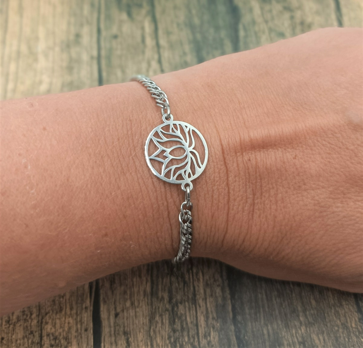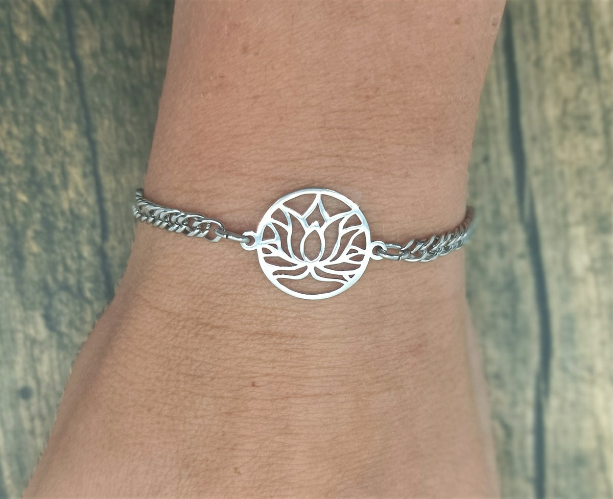 Bracelet- chaîne lotus en acier inox