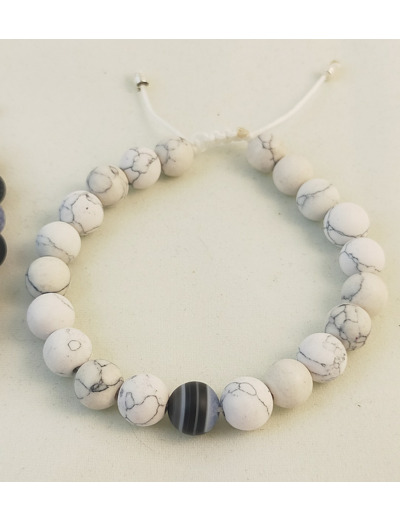 Howlite : favorise l'acceptation de soi et permet d'adopter une attitude positive dans la vie. Cette pierre aide à garder le calme dans un environnement surexcité. Elle détend les grands nerveux, calme la peur et l'irritabilité.