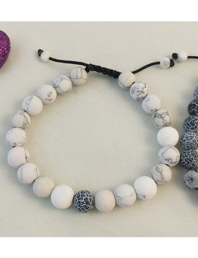 Howlite : favorise l'acceptation de soi et permet d'adopter une attitude positive dans la vie. Cette pierre aide à garder le calme dans un environnement surexcité. Elle détend les grands nerveux, calme la peur et l'irritabilité.