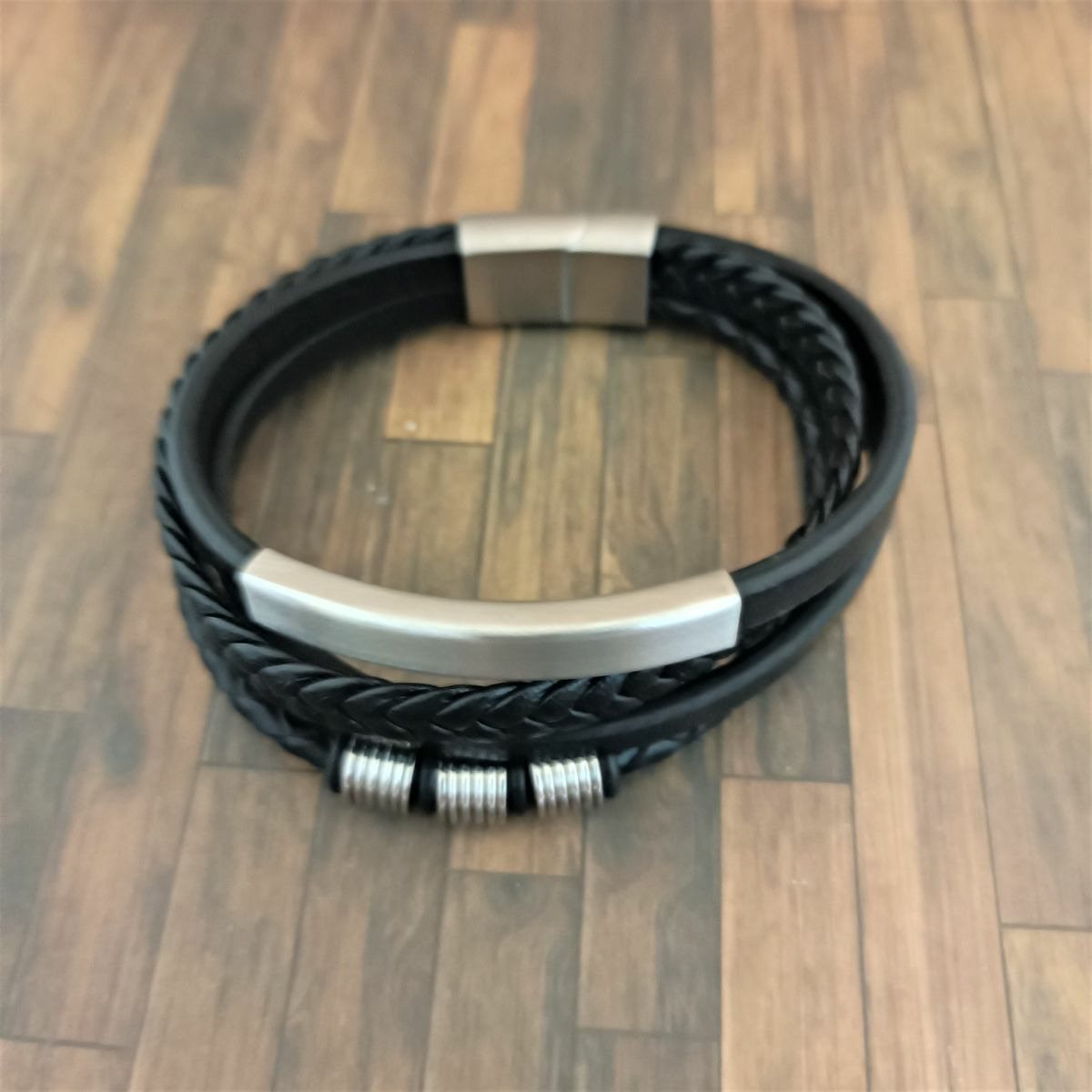 Cuir et acier inoxydable.