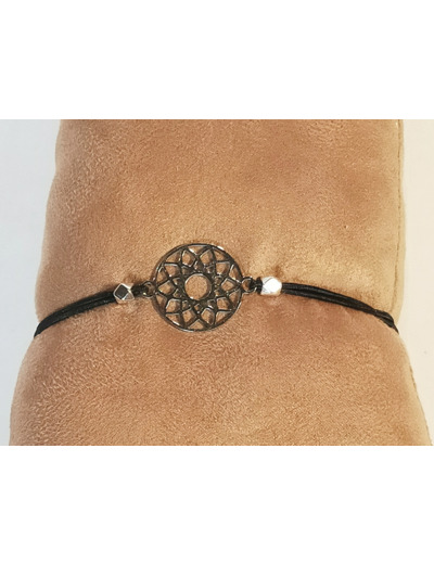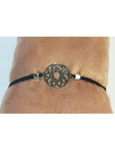 Bracelet élastique argenté/noir/mandala