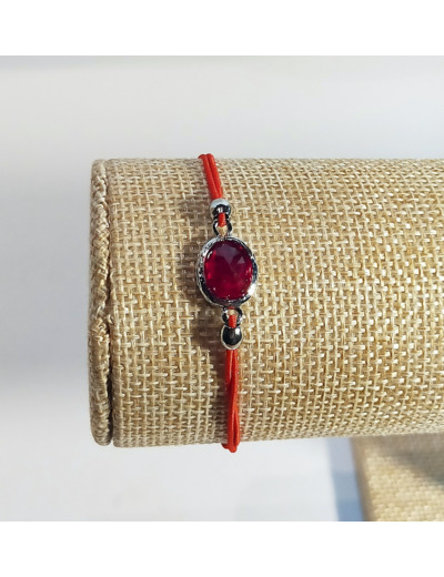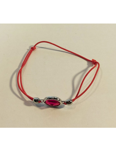 Ce modèle au design indémodable et agréable à porter, allie un cordon rouge élastique de 0.8mm et un connecteurs Crystal Glass ovale 10x9mm rouge opaque-argenté.
