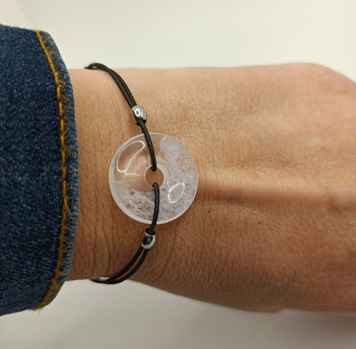Fil élastique avec noeuds coulissant.