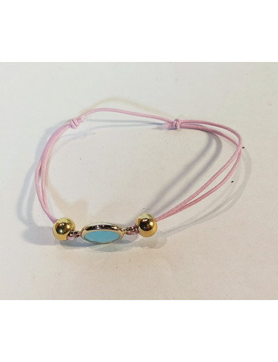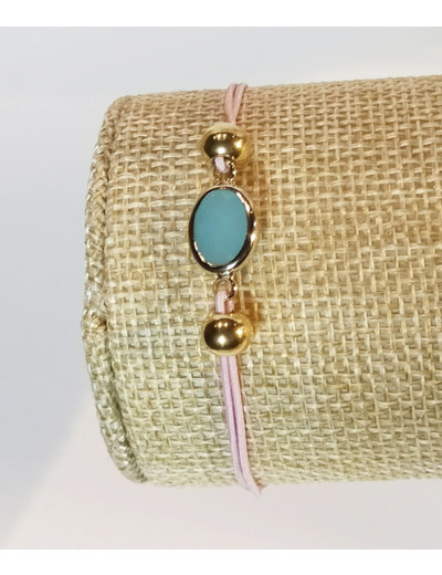 Ce modèle au design indémodable et agréable à porter, allie un cordon rose élastique de 0.8mm et un connecteurs Crystal Glass ovale 10x9mm turquoise opaque-doré.