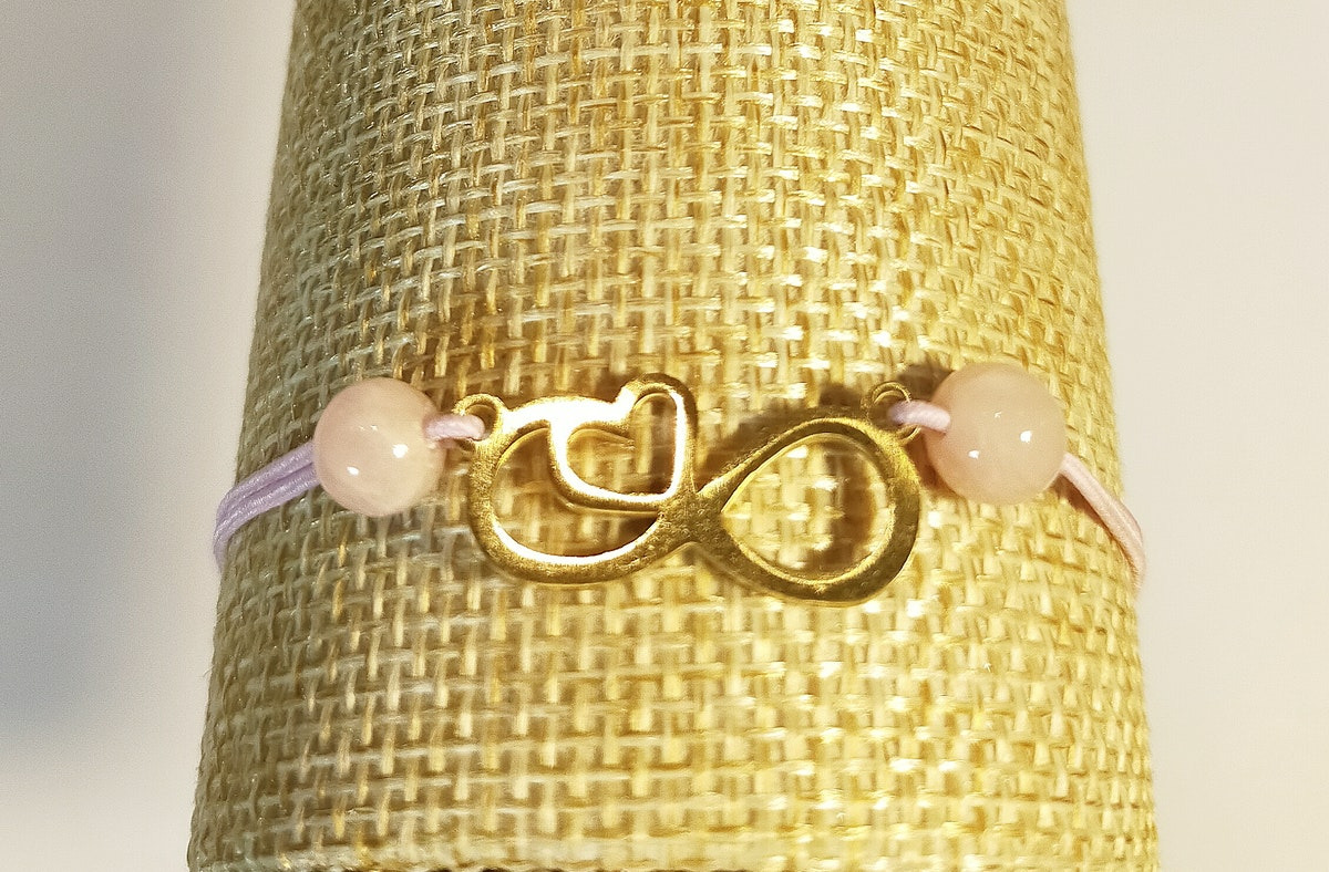 Ce modèle au design indémodable et agréable à porter, allie un cordon rose élastique de 0.8mm, un connecteurs en acier inoxydable et deux perles 0.6 mm de quartz rose.