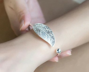 Bracelet en argent ajustable en forme de feuille ouverte