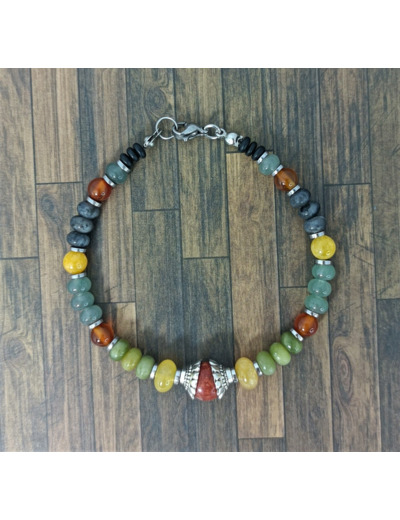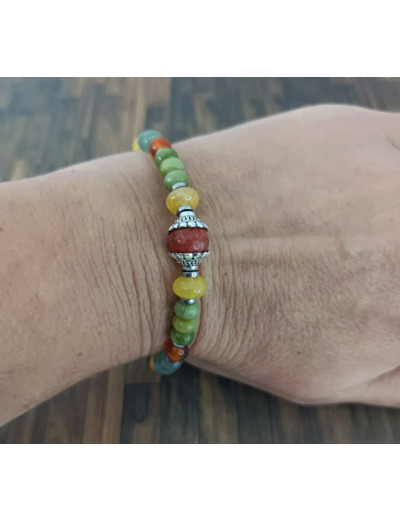 Craquez pour ce magnifique bracelet en perles naturelles d'agate, labradorite, jade, corail rouge et serpentine.