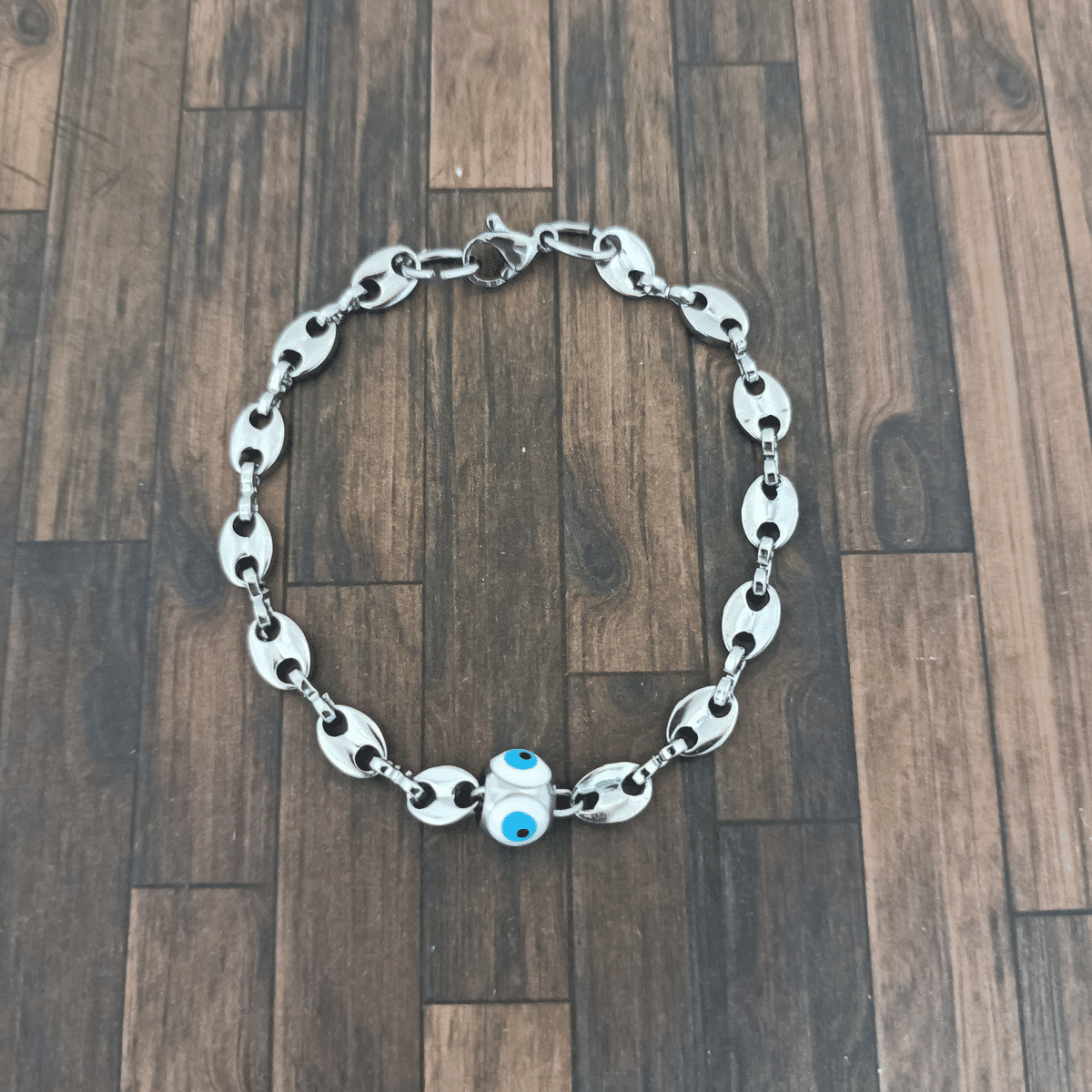 Bracelet grain de café et œil porte bonheur en acier inoxydable
