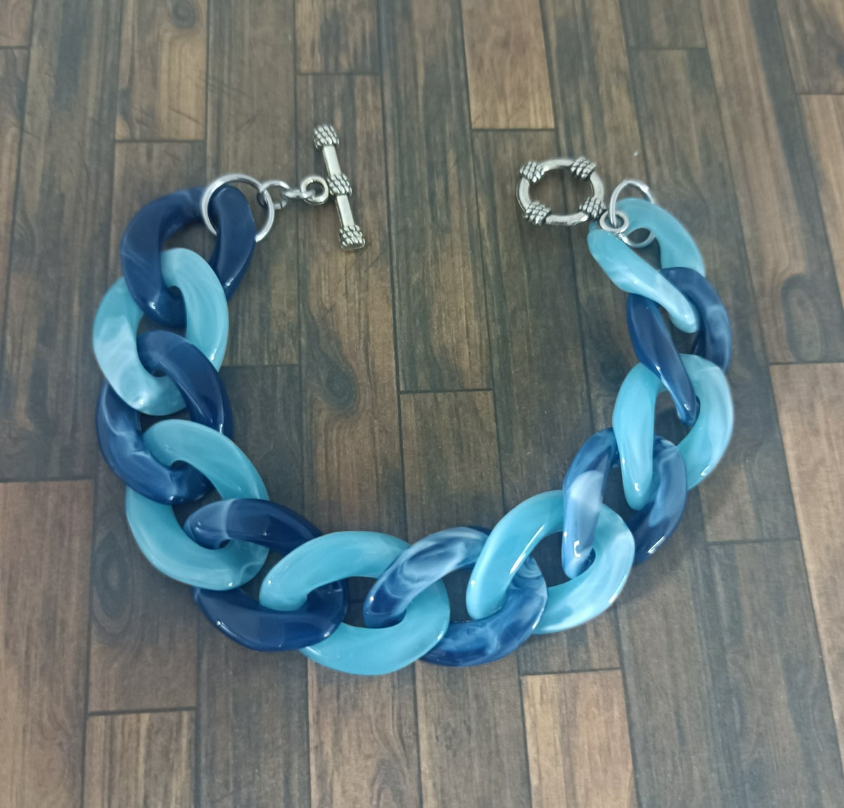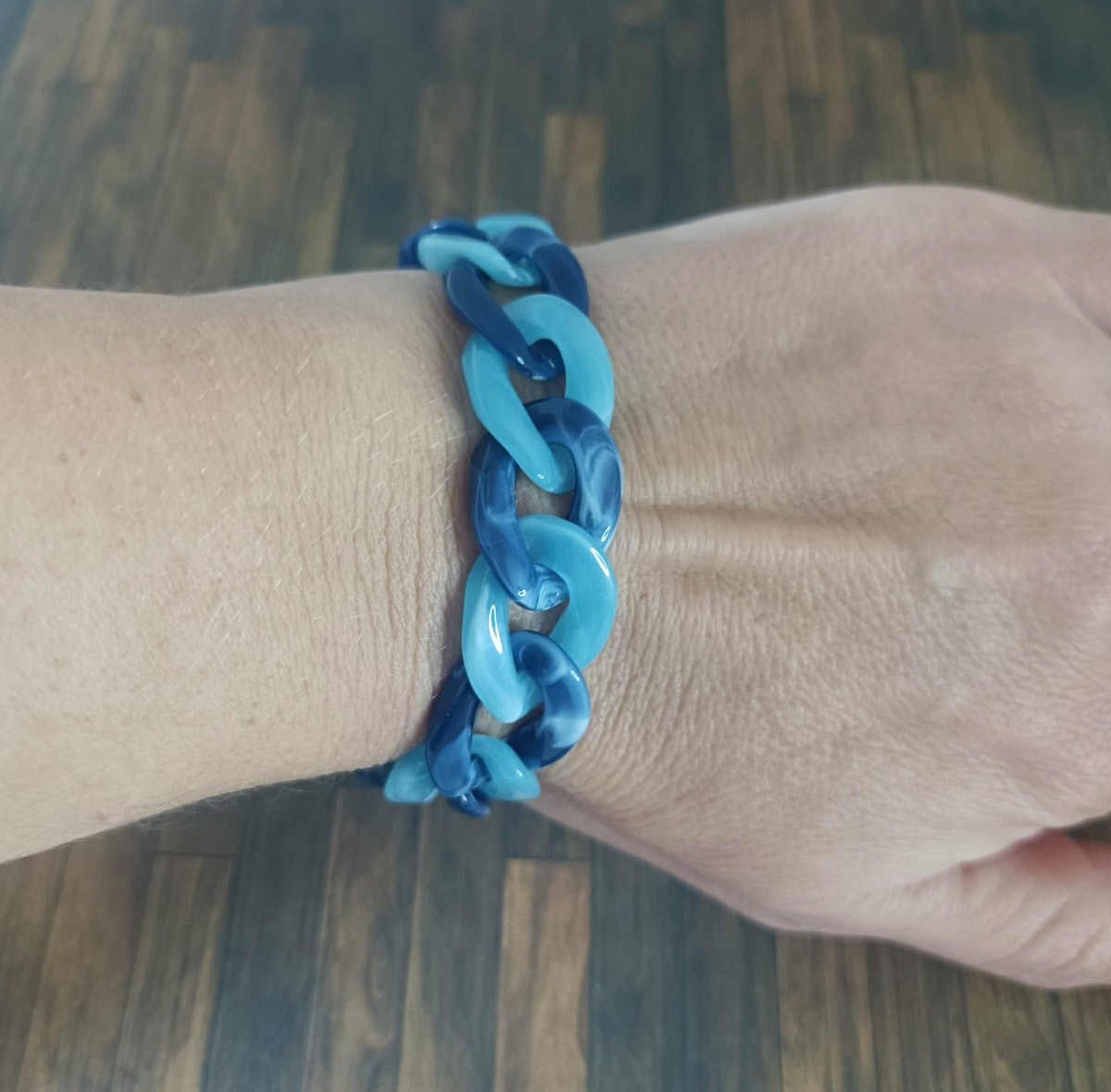 Bracelet gros maillons bleu/bleu ciel argenté 22mm