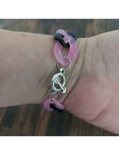 Bracelet gros maillons rose/noir argenté 22mm