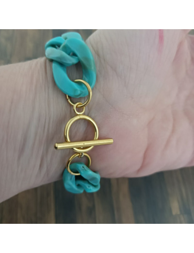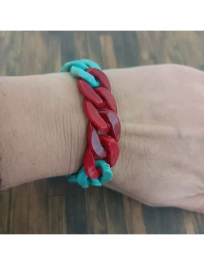 Bracelet gros maillons turquoise/rouge 2 doré 22mm