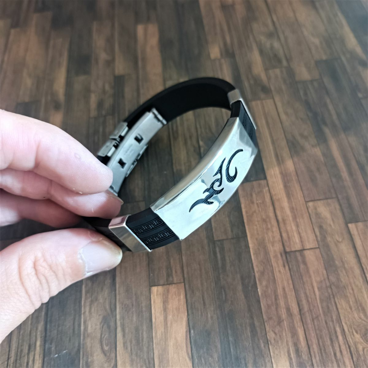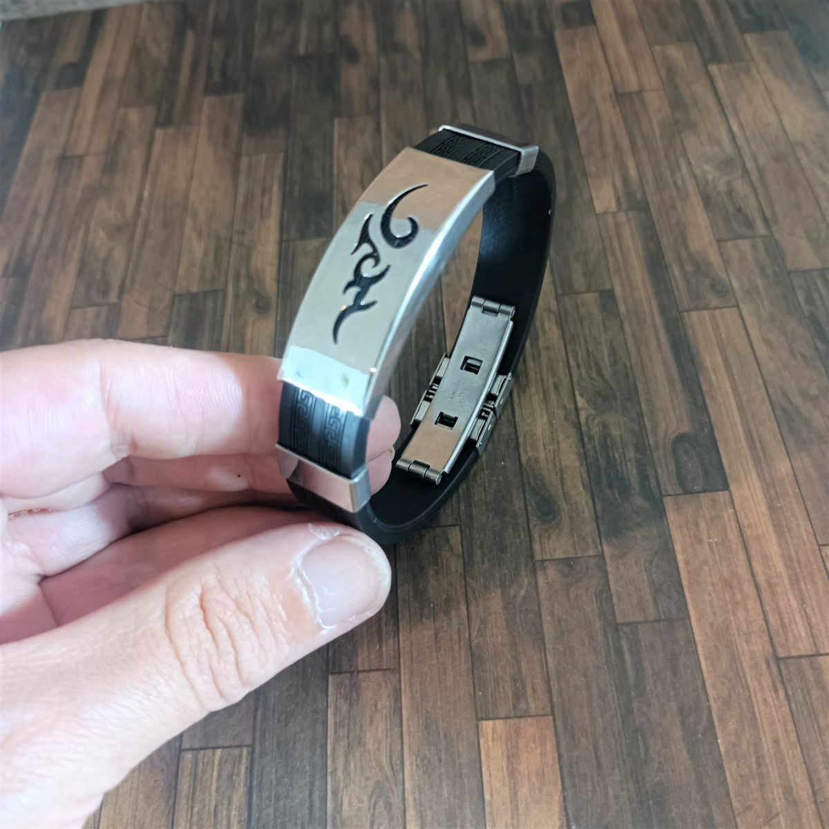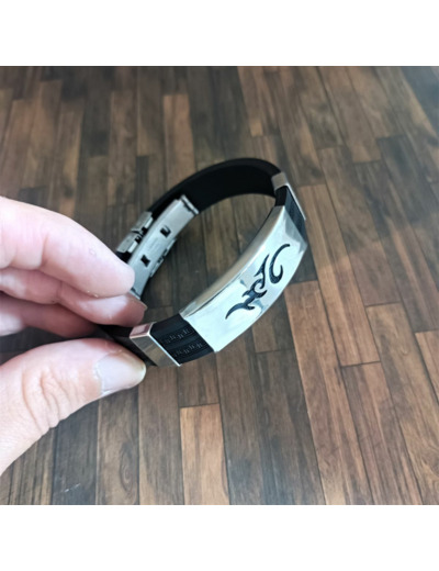 Bracelets ajustable et décontracté, en caoutchouc et acier inoxydable.