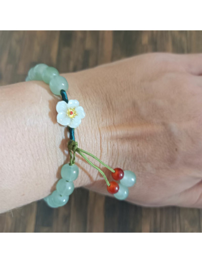 Monté sur fil avec un noeud à chaque perles, ajustable.