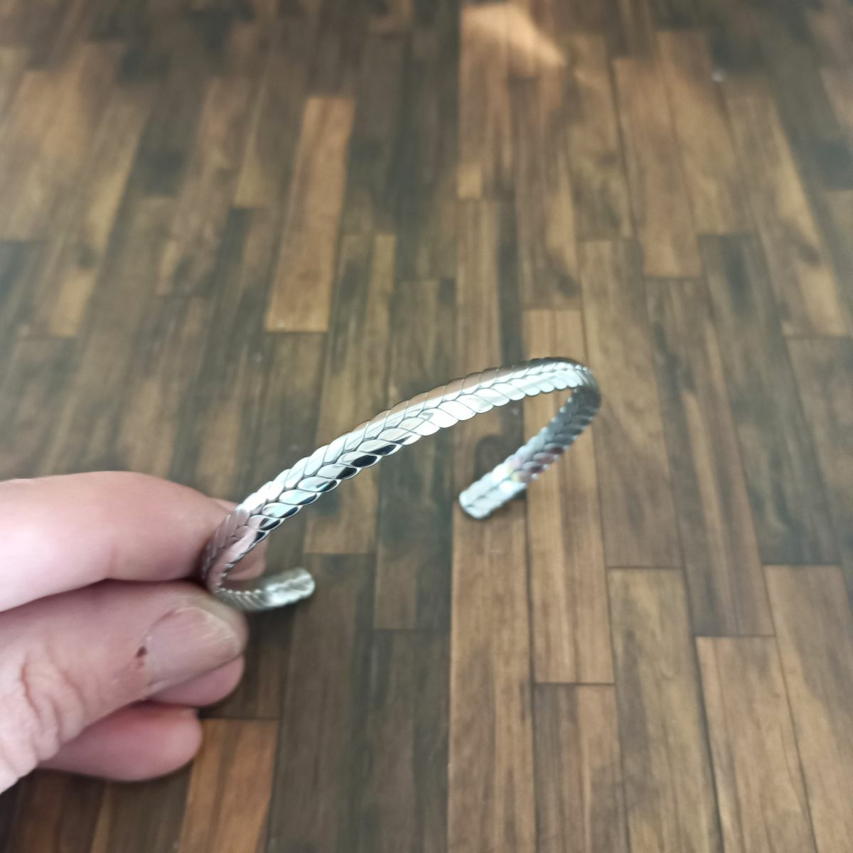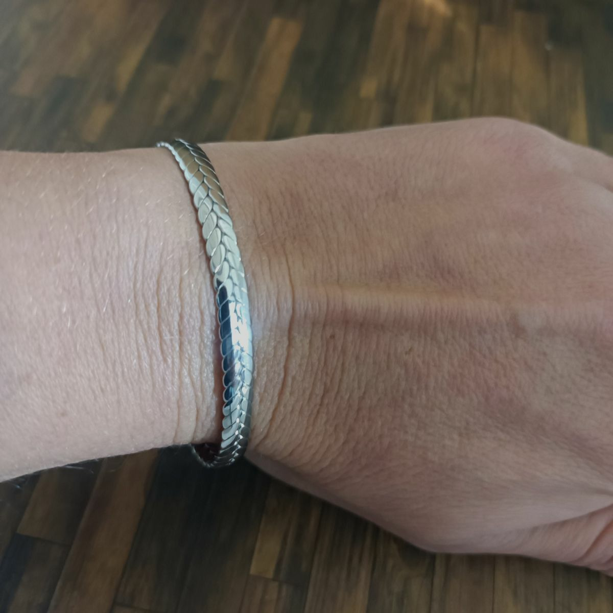 Bracelet jonc en acier Inox feuille Argenté