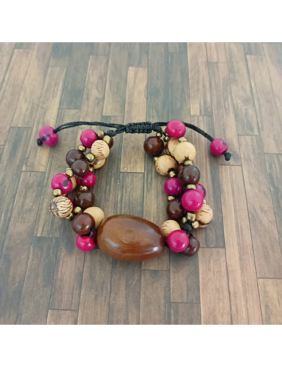 Bracelet Magda marron-beige-rose en ivoire végétal