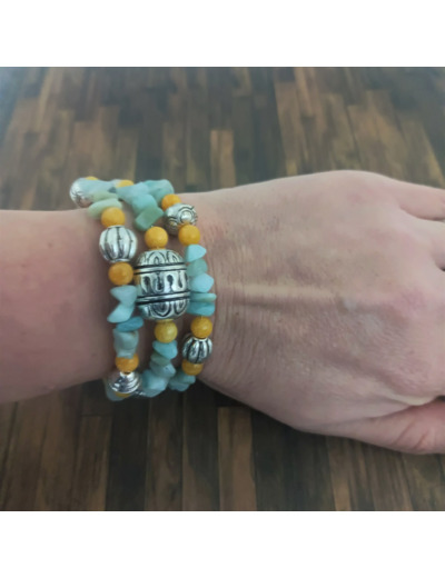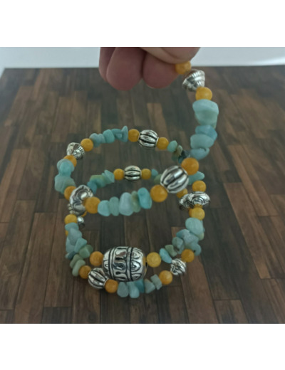 Perles chips et jaune en pierres naturelles.