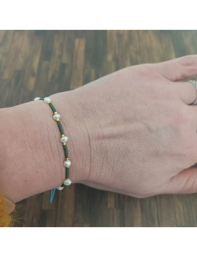 Bracelet Miyuki + perles d'eau douce vert/doré