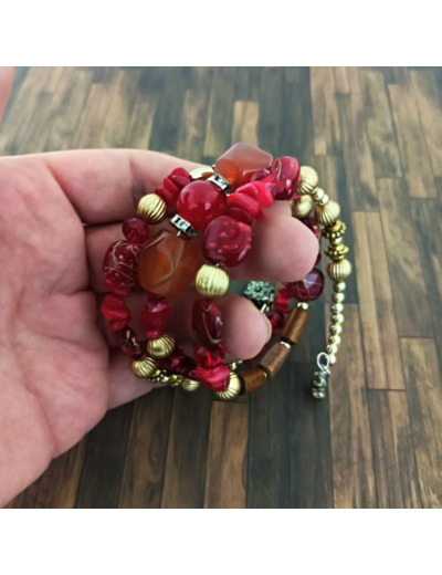 Perles en différentes matières: pierre naturelle, nacre, acrylique, bois, métal.