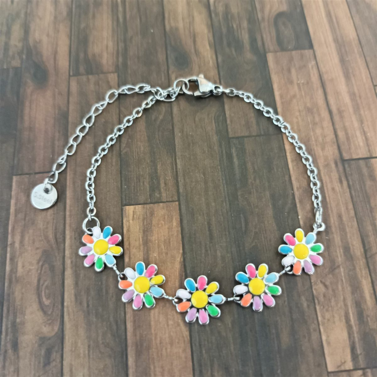 Bracelets en acier inox fleur : • Matière Acier inoxydable et résine époxy (émail)