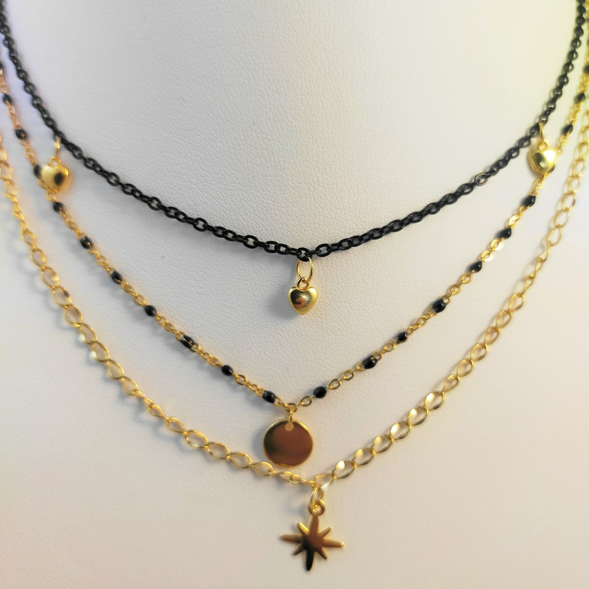 Les chaînes doré sont reliées entre elles et sont en acier inoxydable.
