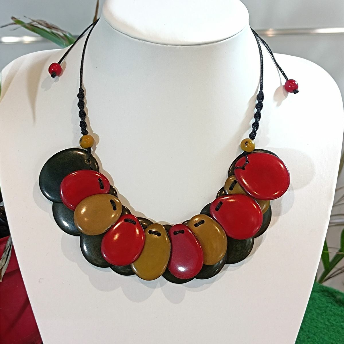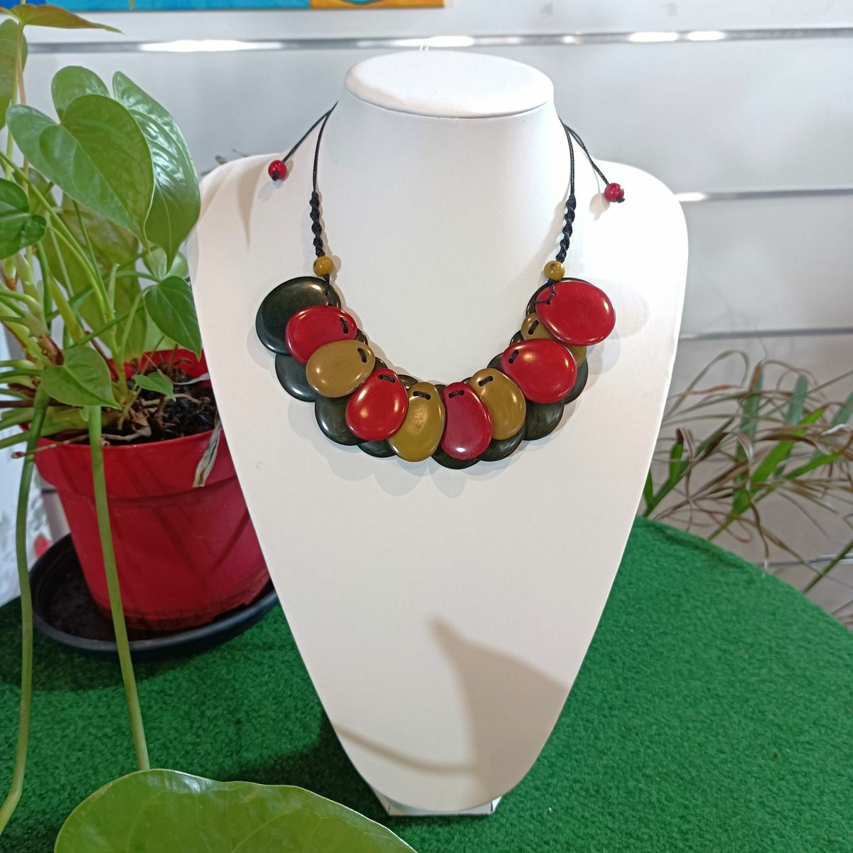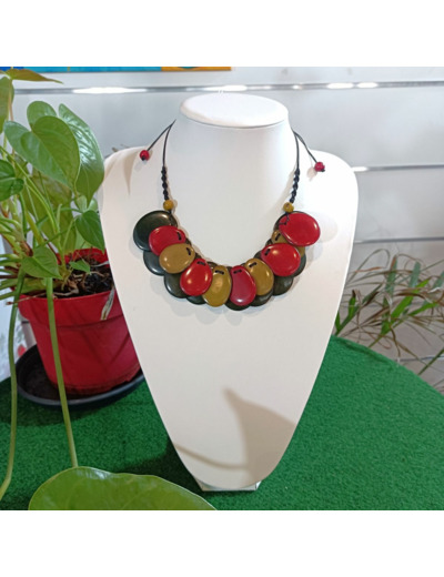 Collier Alicia kaki-vert-rouge en ivoire végétal