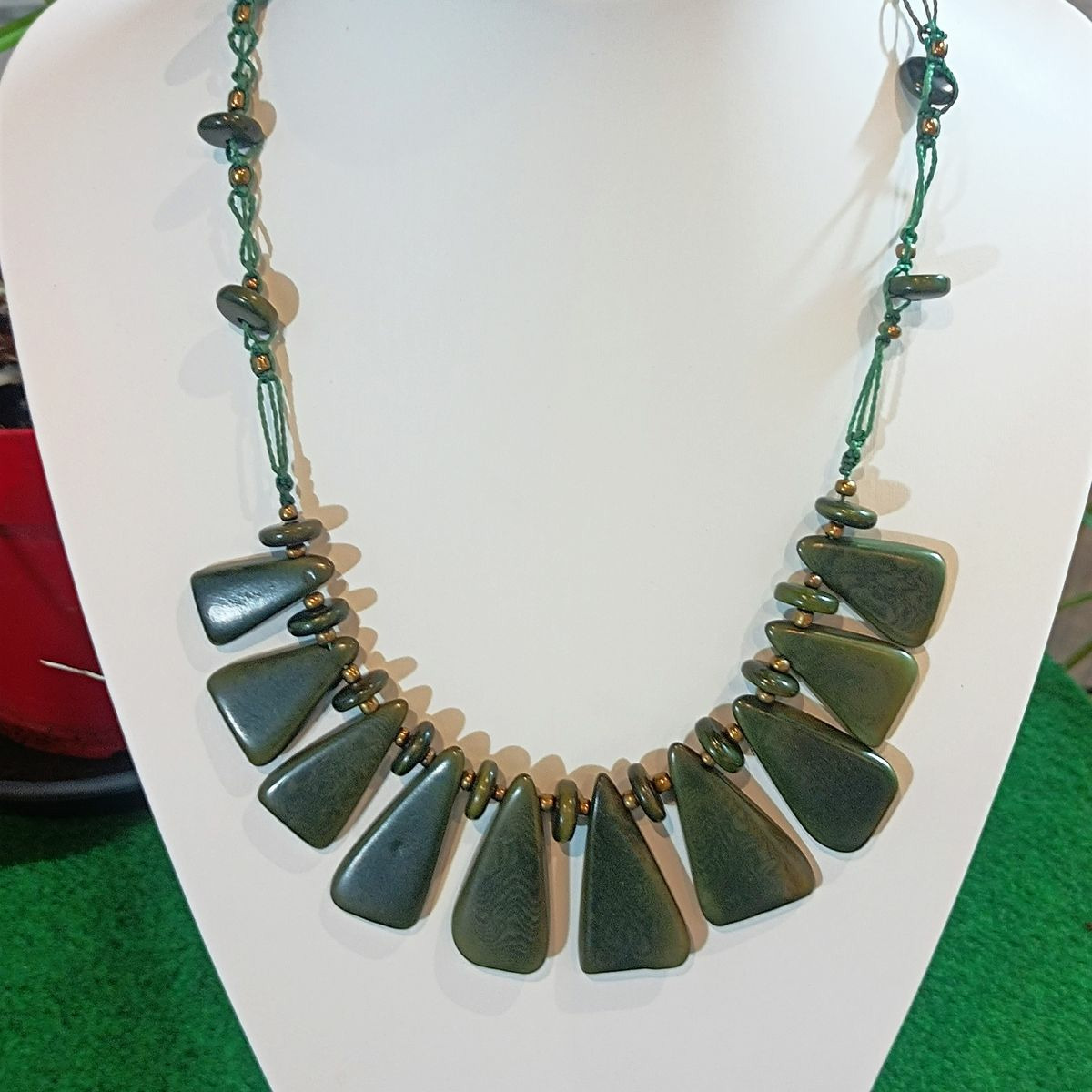 Collier Angèle kaki en ivoire végétal