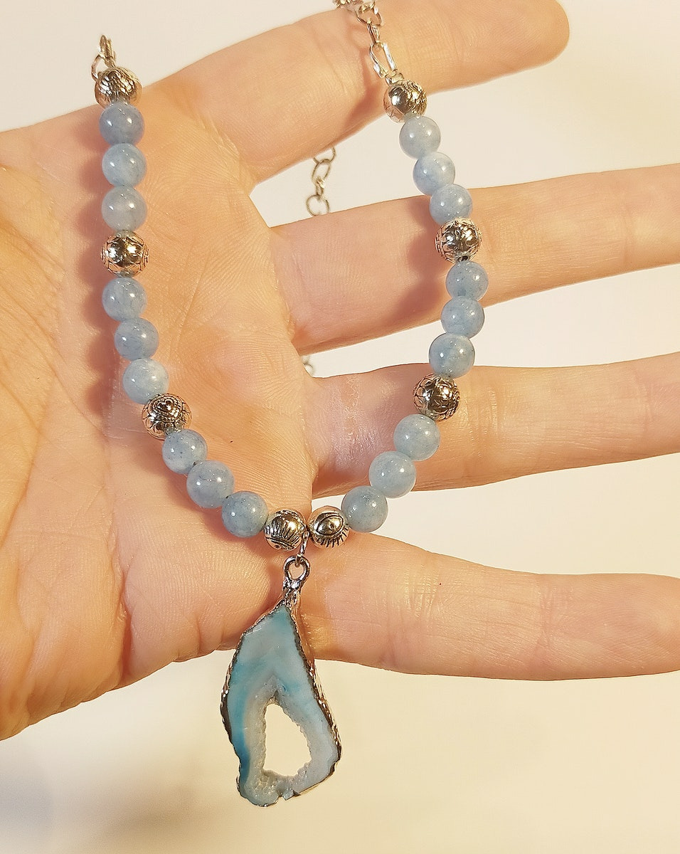 L'angélite est capable de développer la télépathie, le voyage astral… Elle est aussi préconisée pour apaiser les peines et les souffrances psychiques. Elle instaure la paix et la relaxation des corps et de l'âme et développe la prise de conscience, ce qui explique pourquoi elle est considérée comme la pierre de vérité.