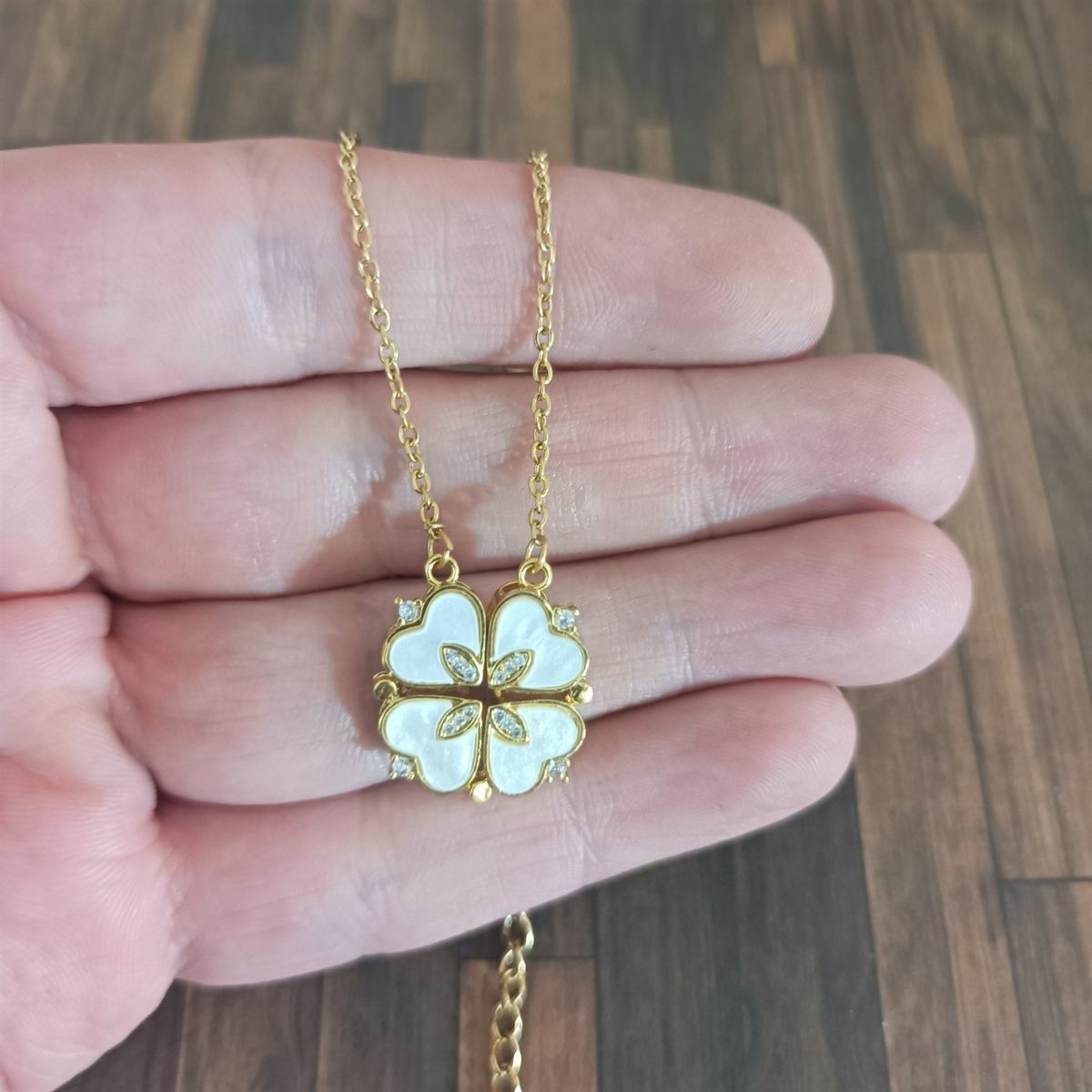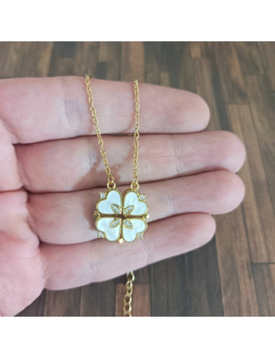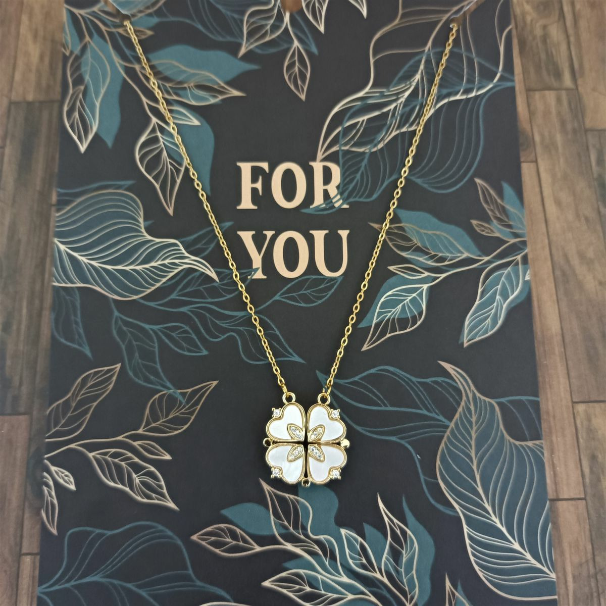 Collier trèfle à quatre feuilles en coeur, pliant et magnétique, 2 Formes possibles, en acier inoxydable et Zircon, sur carte à bijou "For you".