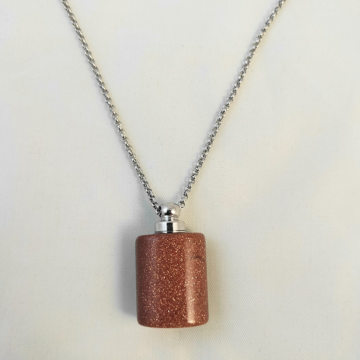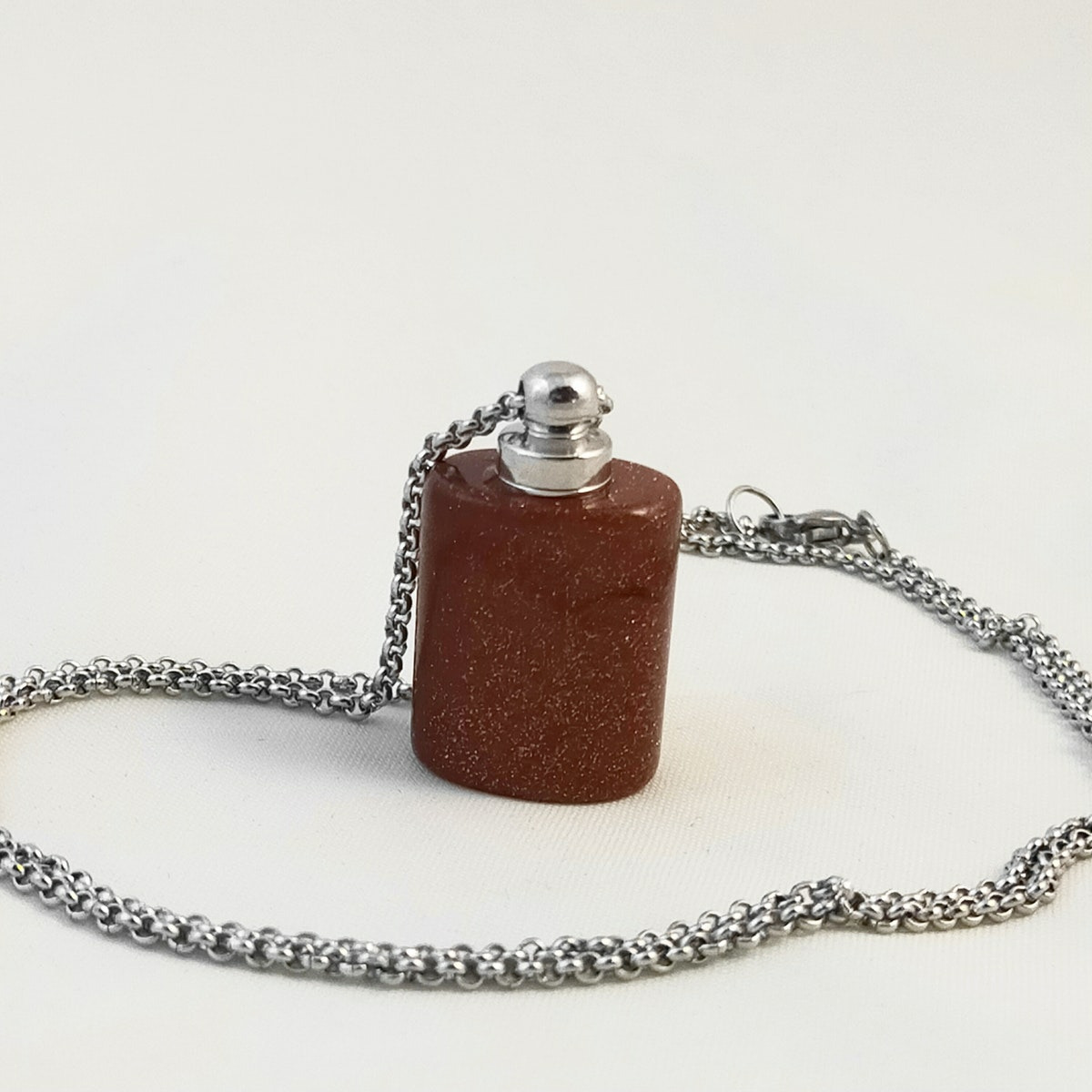 ▲Motif: flacon de parfum minimaliste 28x19mm en pierre de sable doré.