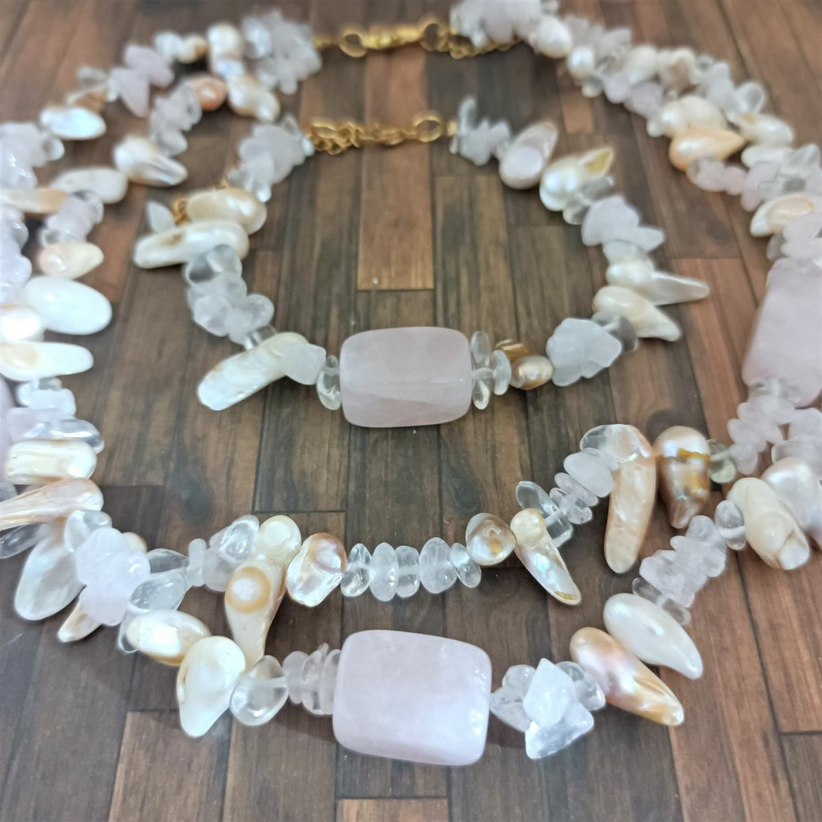 Craquez pour cet ensemble collier double + bracelet en pierres naturelles.