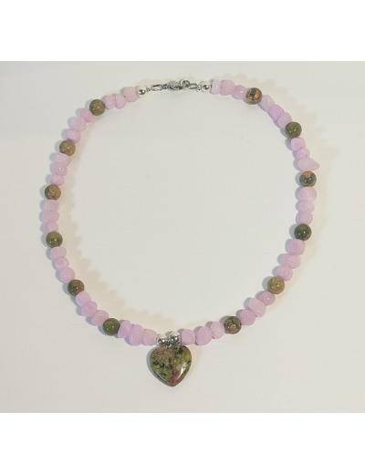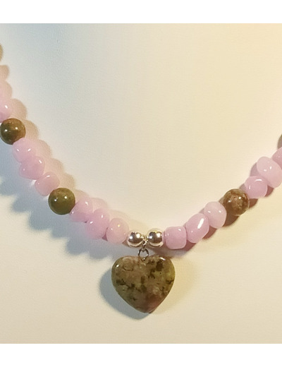 Sur le plan mental en lithothérapie, la pierre unakite permet à celui ou celle qui la porte de se retrouver face à lui ou elle-même. L'unakite permet aussi d'apprendre à relativiser sur les situations, mais aussi à prendre du recul.