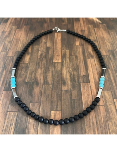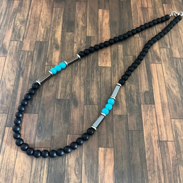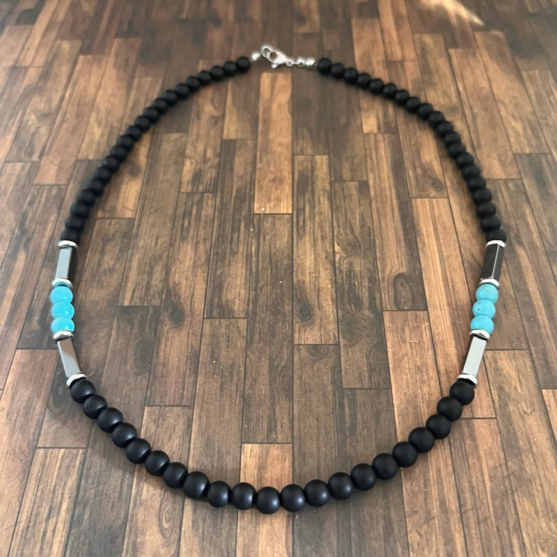 Perles d'agate noire, turquoise de 6mm et perles hématite.