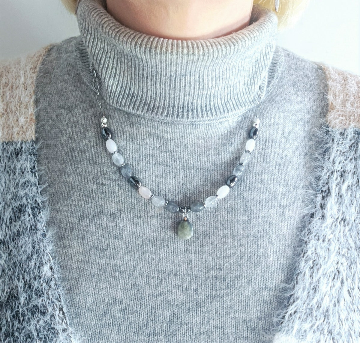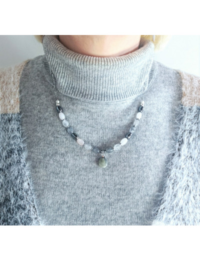 Si vous souhaitez assortir ce collier, vous trouverez le bracelet labradorite/quartz rose/hématite assorti dans la rubrique "Bracelet en perles naturelles".