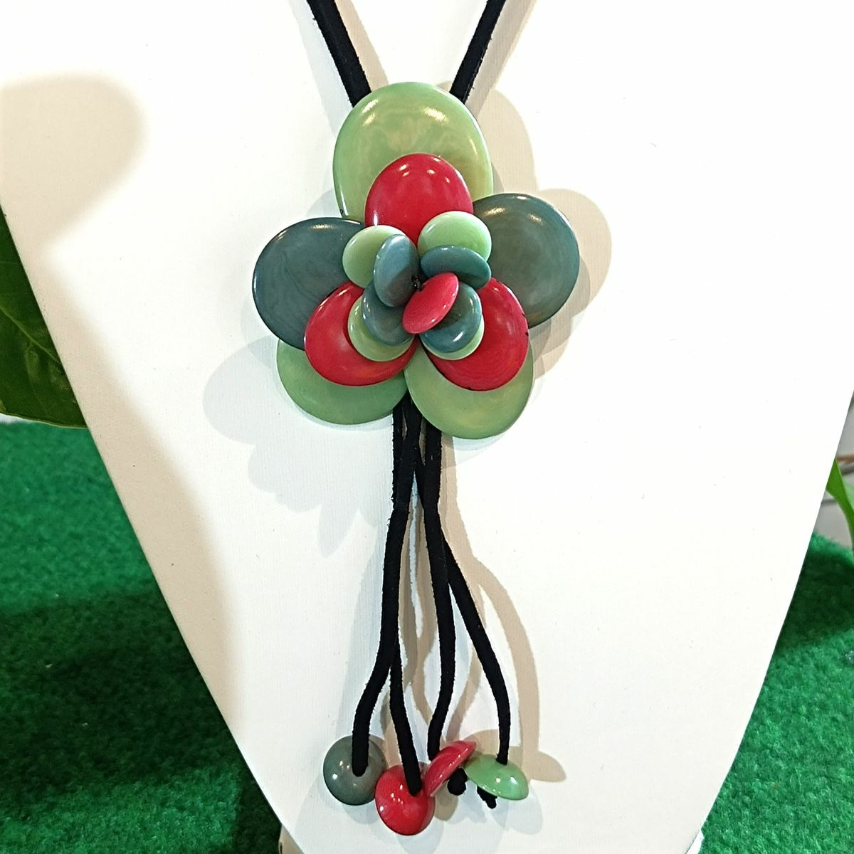 Collier Rosa bleu-rose en ivoire végétal