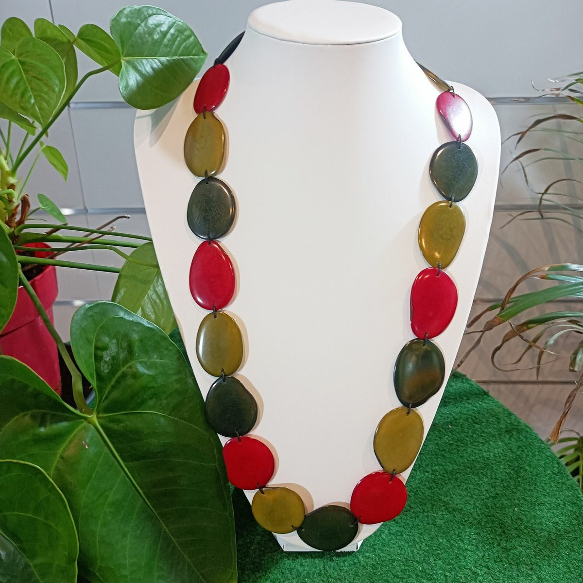 Collier Shakira rouge-kaki-vert en ivoire végétal