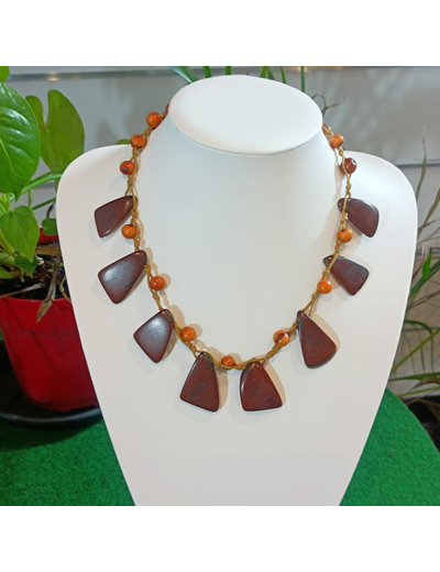 Collier Solange marron-orange en ivoire végétal