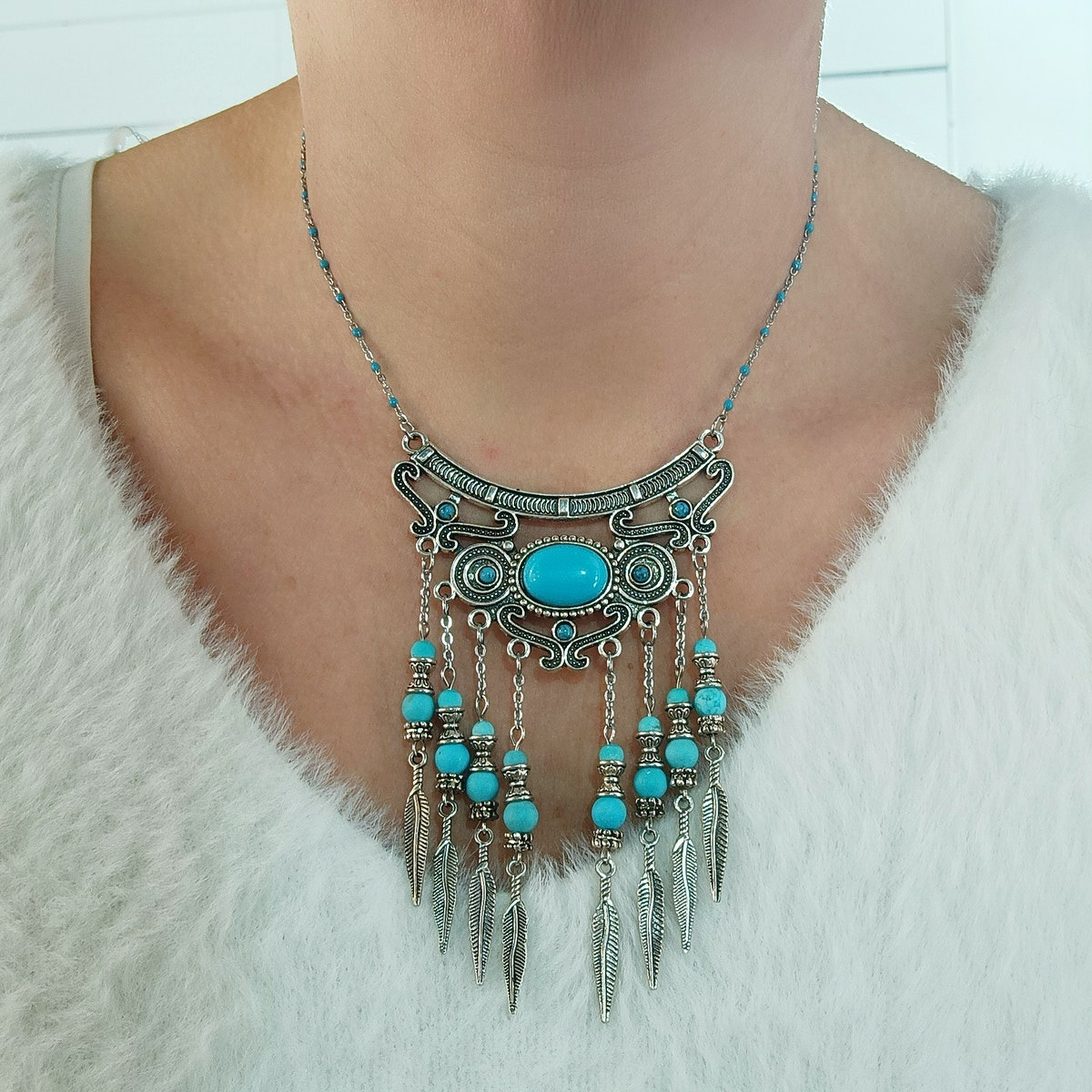 Collier turquoise plumes