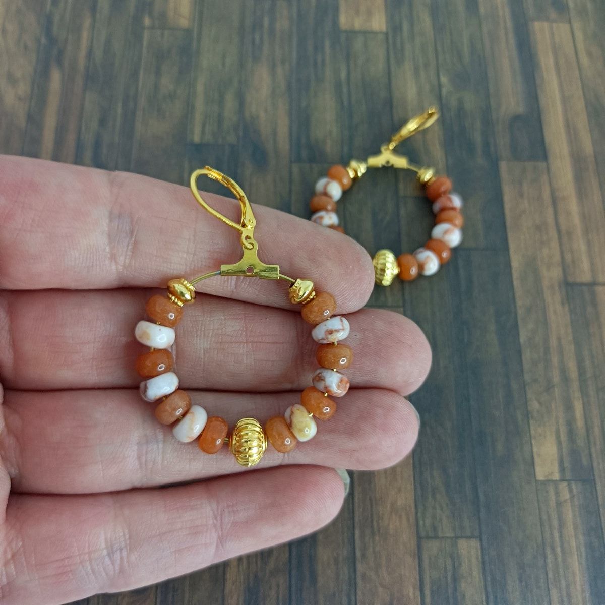 Boucles d'oreilles en perles naturelles de calcite orange.