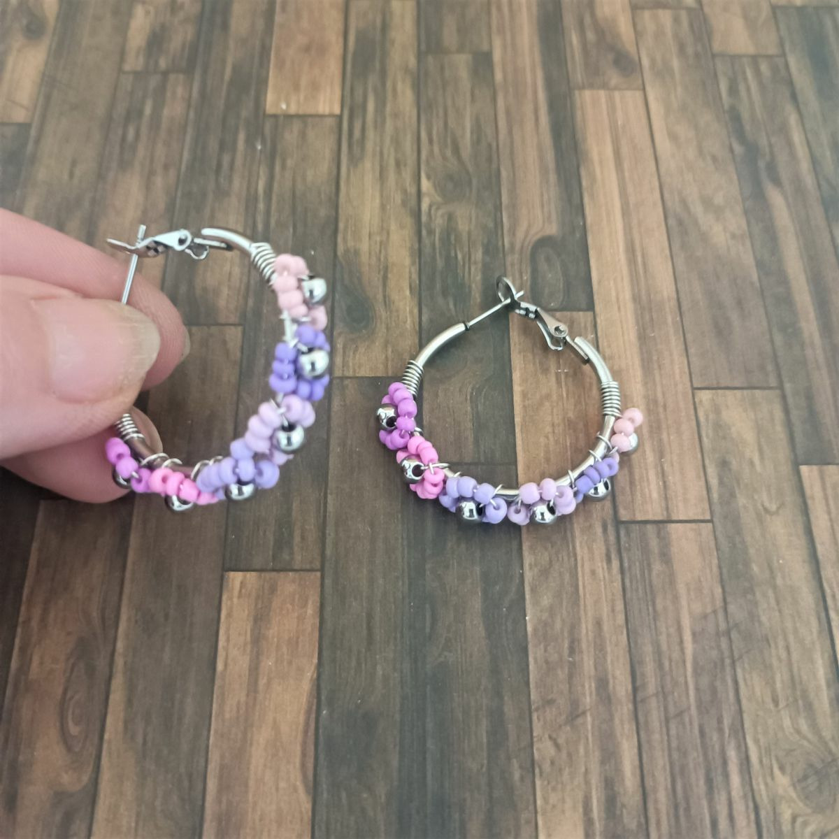 Créoles en acier Inox fleurs 35mm Argenté-rose violet