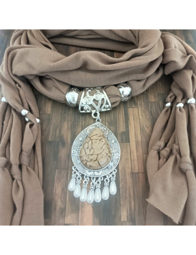 Collier en céramique de Polyester, écharpe de couleur unie avec pendentif en alliage goutte d'eau, écharpe de gland 180*40cm