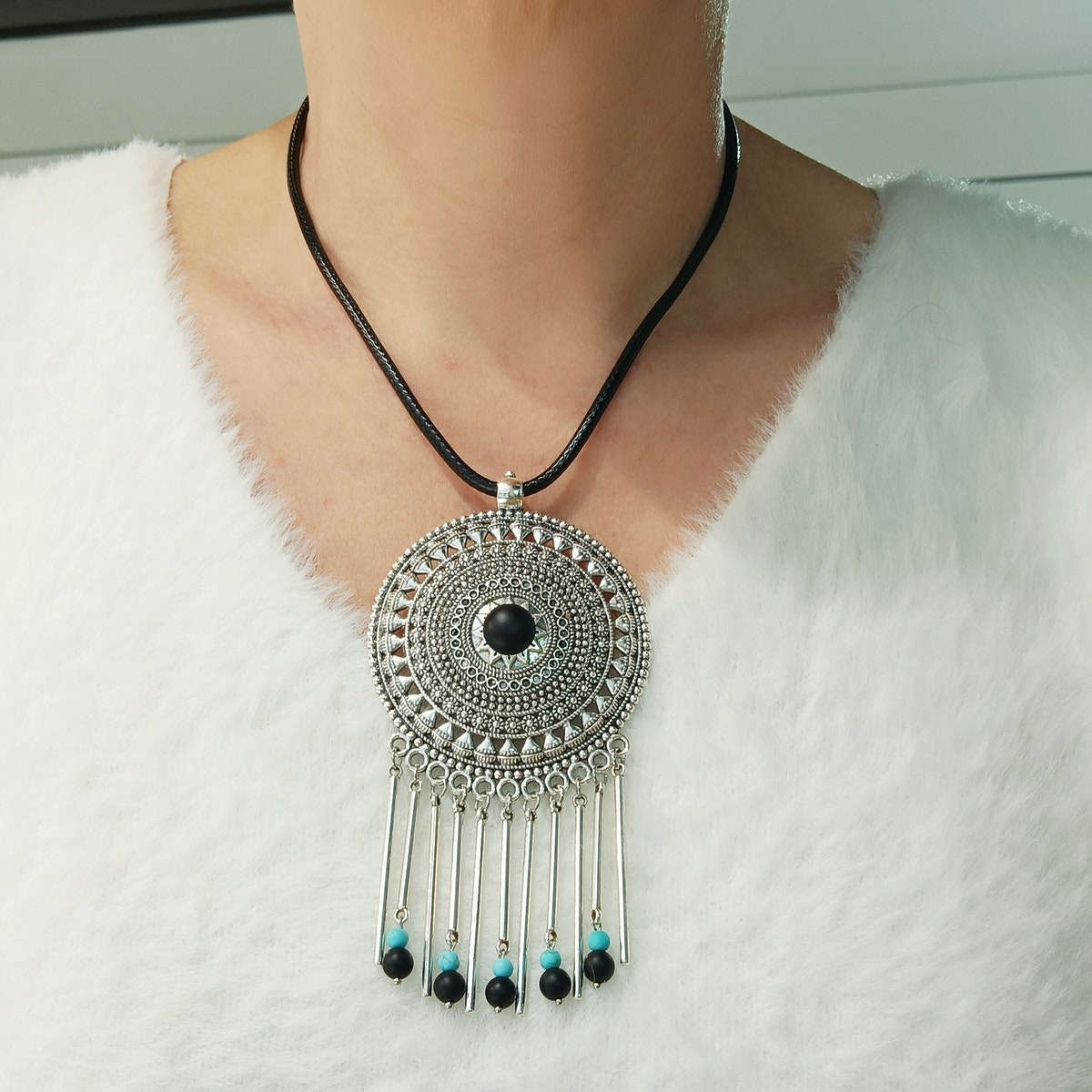 Cordon ciré noir 4mm de 42cm.