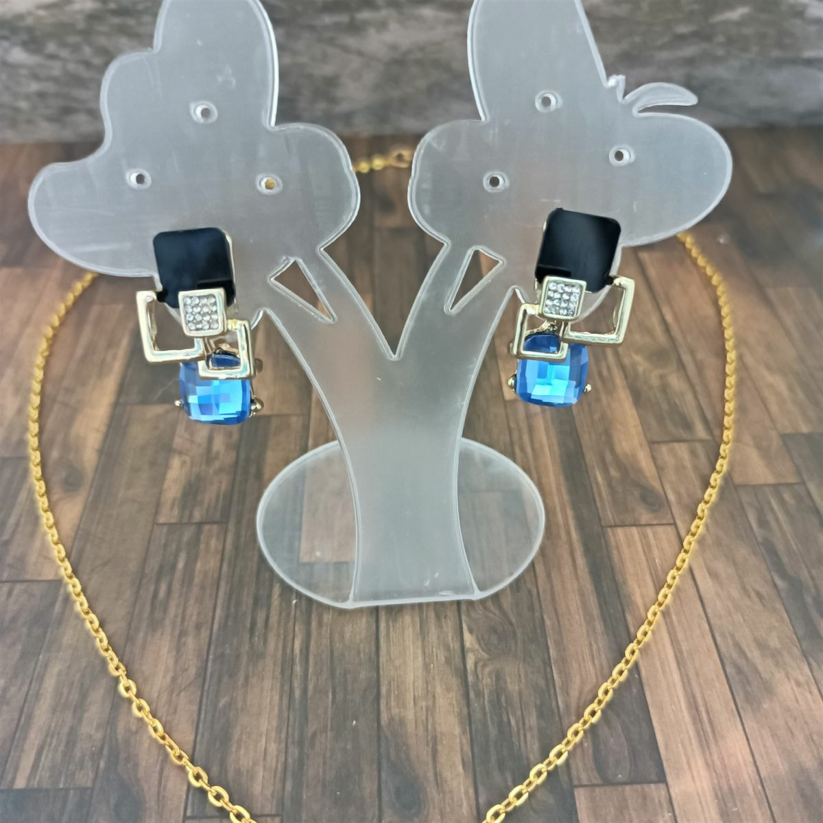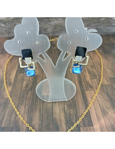 Chaîne, pendentif + boucles d'oreilles cristal.