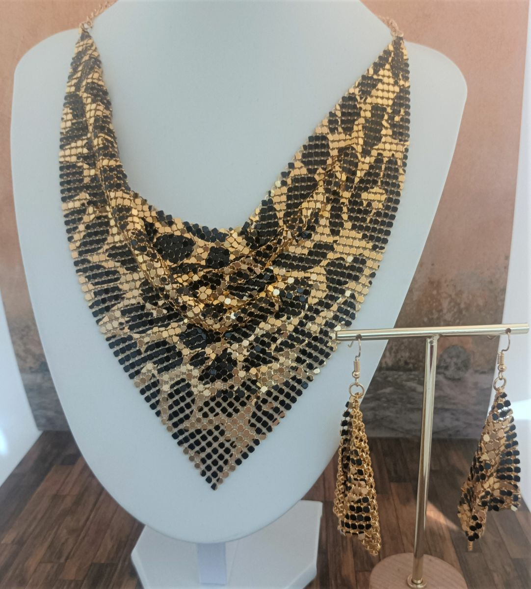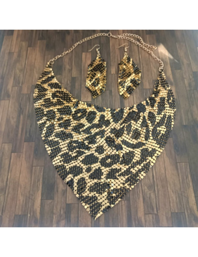 Parure ras du cou en métal brillant léopard + boucles d'oreilles