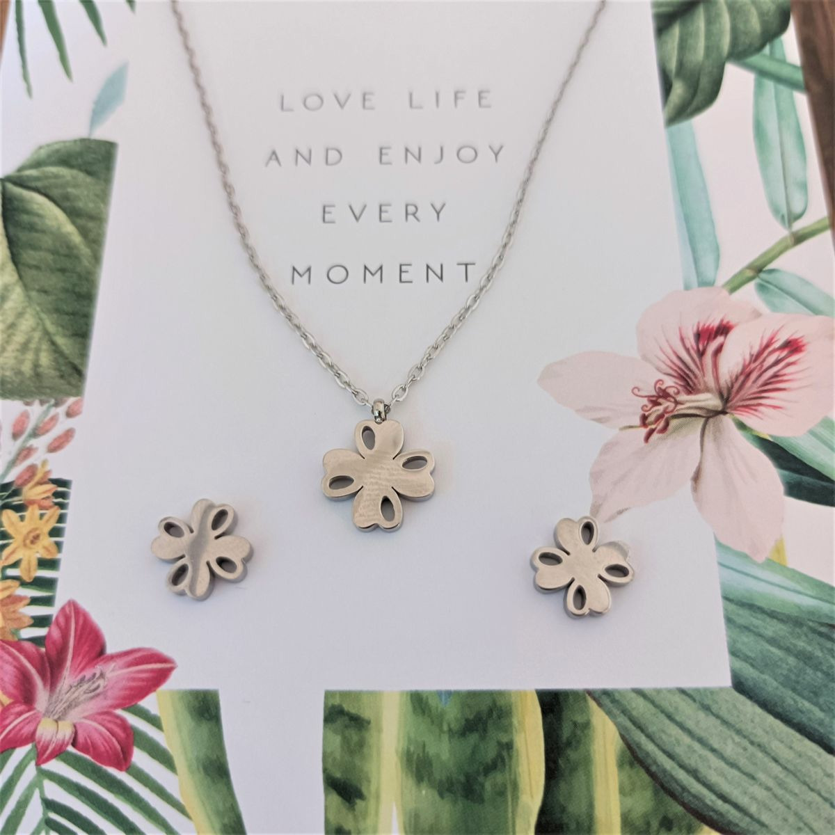 Avec carte à bijou "Love life and enjoy every moment" (Aime la vie et profite de chaque instant).