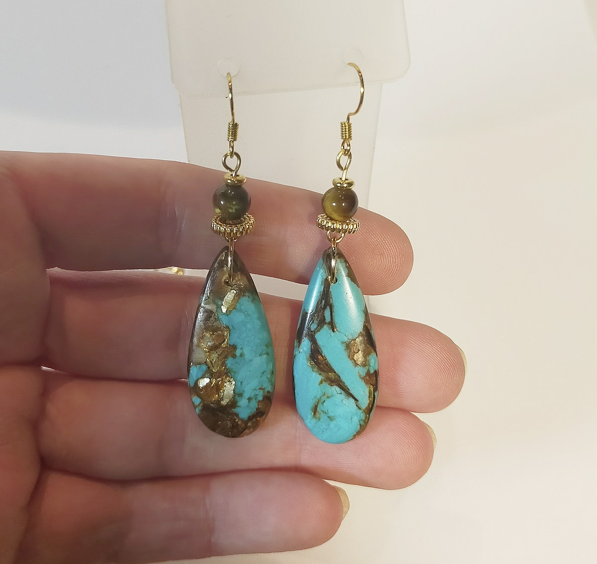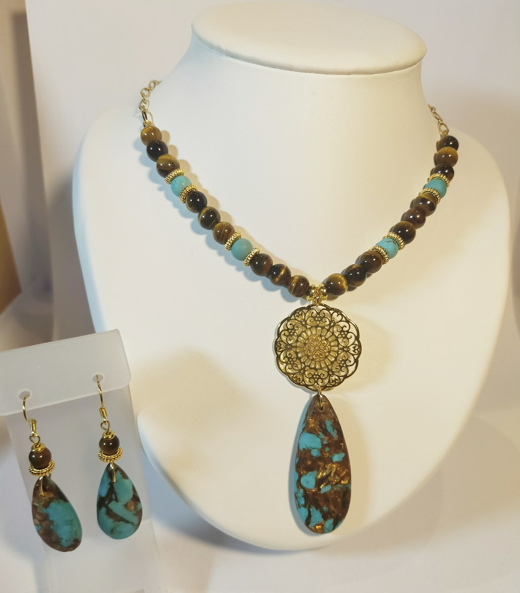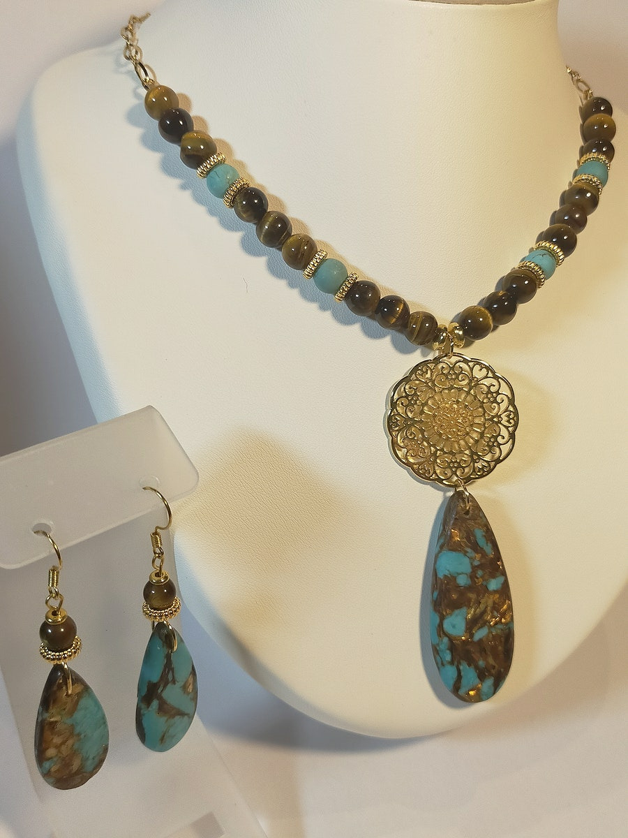 Perles naturelles turquoise et oeil de tigre de 8mm