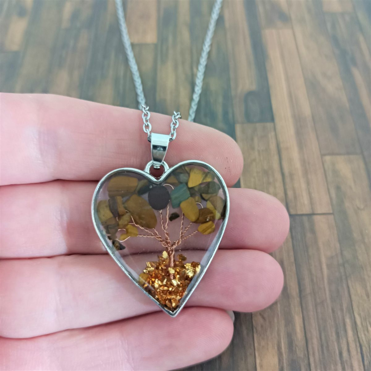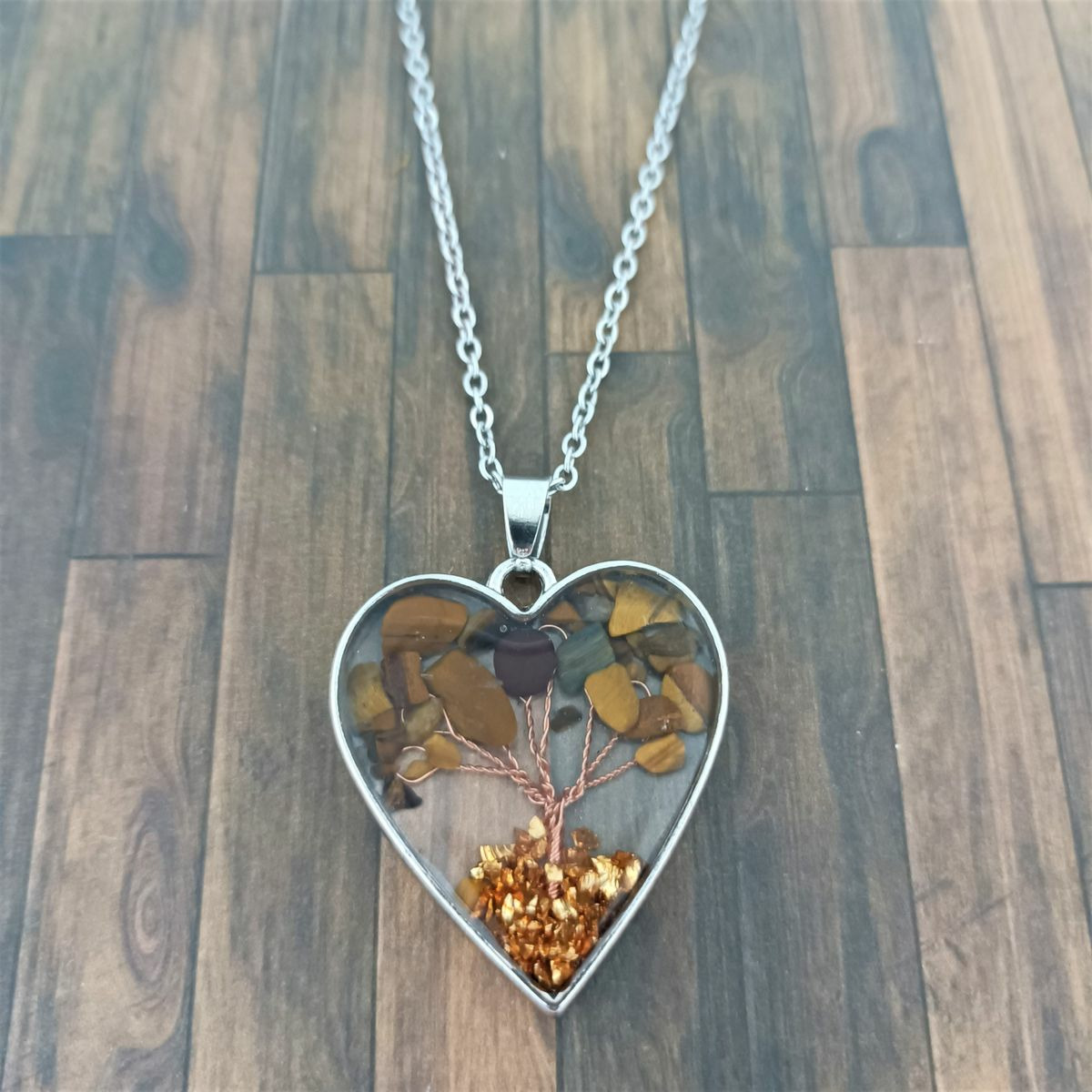 Pendentif arbre de vie résine/pierres naturelles cœur 1